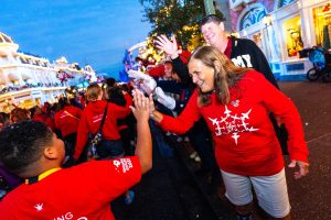 On the final day of Snowball Express, the families participated in the “Walk of Gratitude” at daybreak inside Magic Kingdom. As the sun rose on a brisk morning, Disney cast members eagerly cheered them on as they made their way down Main Street, U.S.A., towards Cinderella Castle.