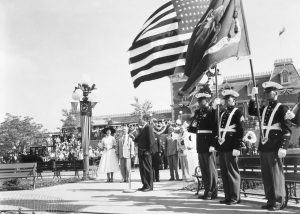 Flag ceremonies have been a daily tradition at Disneyland Resort and Walt Disney World Resort since their openings in 1955 and 1971, respectively. The daily flag retreat ceremonies offer a heartfelt moment each day where the Disney community, guests, and cast members come together to pay tribute to veterans and active-duty military personnel.