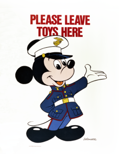 As noted in the 2018 Disney Editions book From All of Us to All of You by author and historian Jeff Kurtti, “Throughout the years, Walt continued to support Toys for Tots, participating in public service advertising and helping the message of giving reach millions of U.S. citizens.”